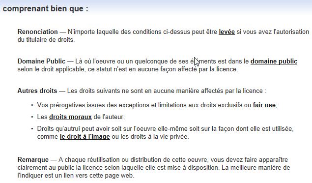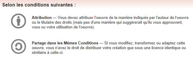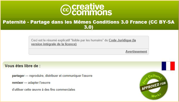 ![]() Les droits donnés à l'utilisateur sont très importants : partager, remixer, utiliser à des fins commerciales. |